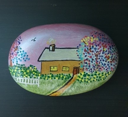 She paints stone and makes them speak. She uses river stones and paints them using acrylic colours. A layer of varnish is then applied on the paint after proper drying for around 15 days.